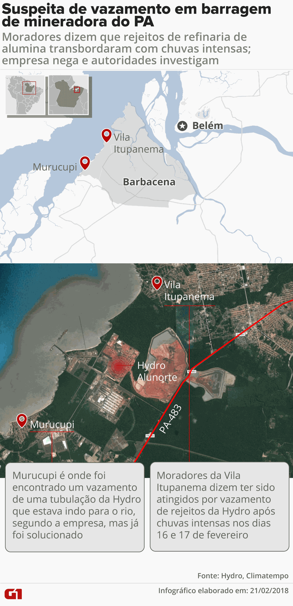A empresa de mineração negou o vazamento ou ruptura das barragens de rejeitos de bauxita. “O que eu posso dizer foi que não houve transbordo ou ruptura. A barragem é projetada para receber excesso de água", afirmou o diretor de Meio Ambiente, Saúde, Segurança e Responsabilidade Social da Hydro, Domingos Campos.